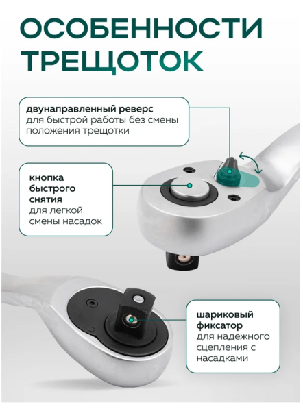 Посадочный размер трещотки - 1/4; 1/2; 3/8 дюйма