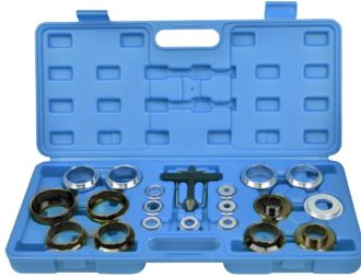 Универсальный набор RF-920G1 Rock Forcе представляет собой установщик масляных сальников, а также приспособления для их демонтажа. Комплект приспособлений можно использовать для демонтажа масляных уплотнений диаметром от 27 до 64 мм. Универсальный съемник сальников и оправки представляет собой комплект для монтажа / демонтажа сальников коленчатого и распределительного валов двигателей легковых автомобилей различных марок.