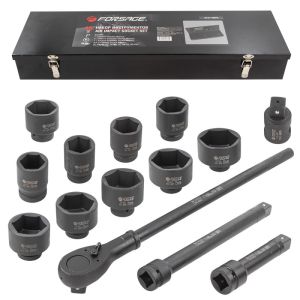 Набор инструментов ударных с посадочным квадратом 1". Набор включает в себя ударные головки, трещотку, воротки и удлинители. Они изготовлены из высококачественной хромомолибденовой стали (Cr-MO), что обеспечивает им прочность и долговечность. Головки ударные предназначены для зажима/разжима деталей и другой работы внутри механизмов. Они могут использоваться в автомобильном ремонте, строительстве, промышленных процессах и других областях. Способны выдерживать значительные нагрузки и удары, что позволяет работать с более тугими крепежными элементами и устойчивы к повреждениям. Трещотка и воротки используются вместе с головками для зажима/разжима внутри различных механизмов. Удлинители применяются при работе в труднодоступных местах. Незаменимый инструмент в арсенале любого автомеханика или промышленного работника, который работает с крепежными элементами. Они обеспечивают быстрое и эффективное решение задач, связанных с крепежом.
