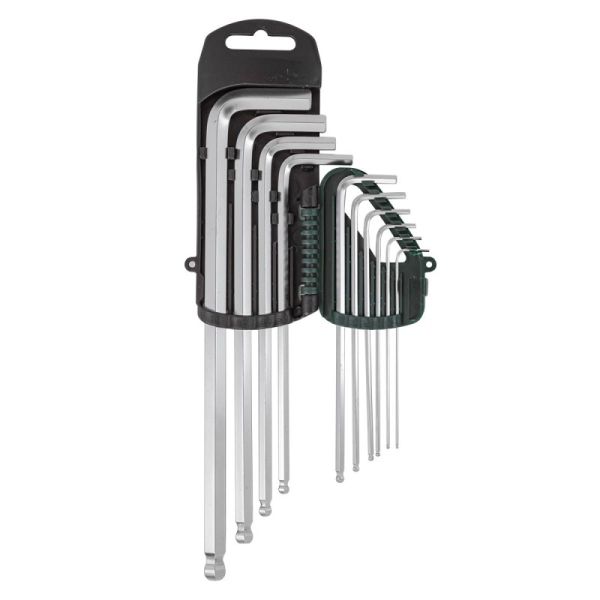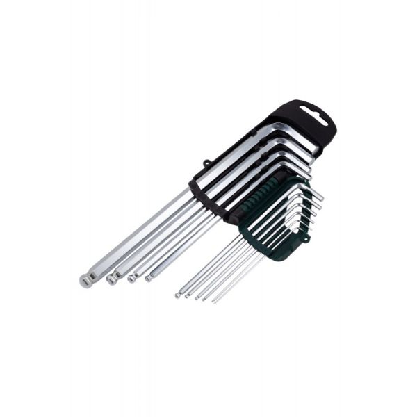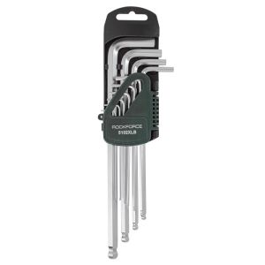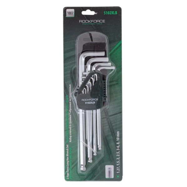Набор шестигранных ключей Hex, экстрадлинных - это профессиональный инструмент для закручивания и откручивания деталей с шестигранными отверстиями. Набор Г-образных ключей шестигранных - это универсальный набор инструментов для слесарно-монтажных работ, содержащий 10 ключей разных размеров. Ключи изготовлены из хромованадиевой стали, отличаются высокой прочностью и устойчивостью к износу. Каждый ключ имеет свой размер и форму, которые позволяют обеспечить надежное крепление и фиксацию крепежа с шестигранным профилем. Шар на конце ключа позволяет легко захватывать ключ и поворачивать его без риска соскальзывания. Набор упакован в пластиковый держатель, который обеспечивает удобство хранения и транспортировки инструментов. Размеры: 1.27, 1.5, 2, 2.5, 3, 4, 5, 6, 8, 10мм