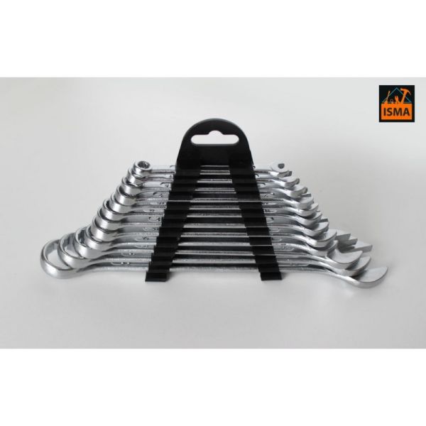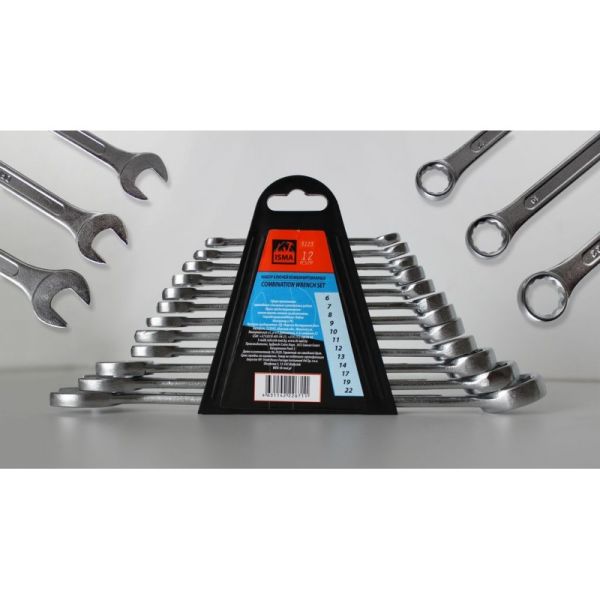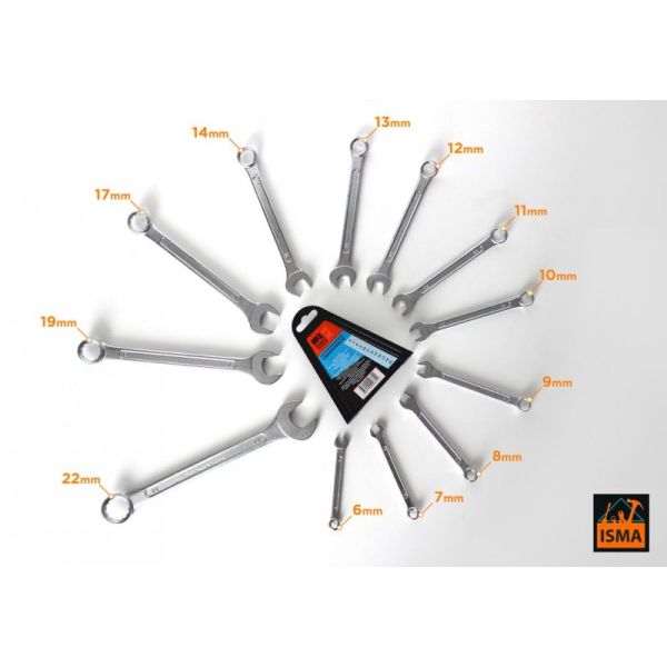 Ключи комбинированные – универсальные гаечные ключи, совмещающие в себе функционал и преимущества рожковых и накидных ключей. Зевы комбинированных ключей имеют одинаковые размеры. Ключи гаечные с открытым и кольцевым зевами предназначены для монтажа либо демонтажа резьбовых соединений. Набор изготовлен из высококачественной стали Cr-V.