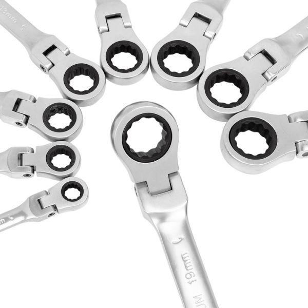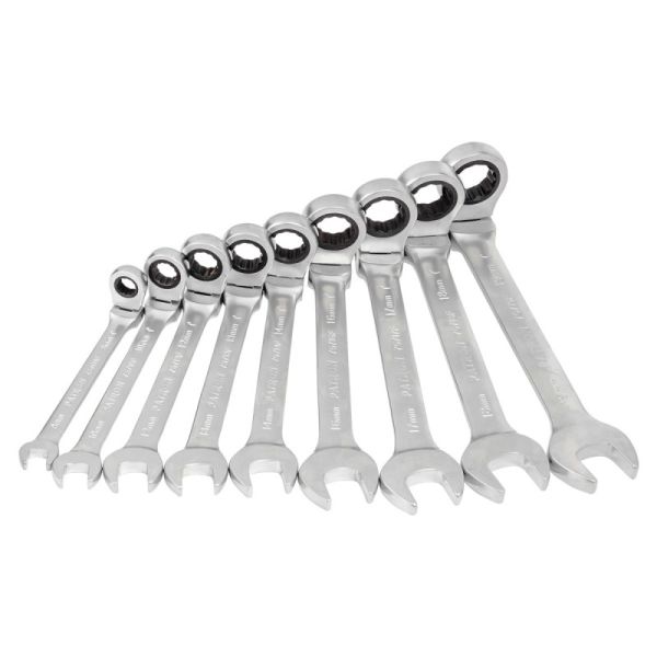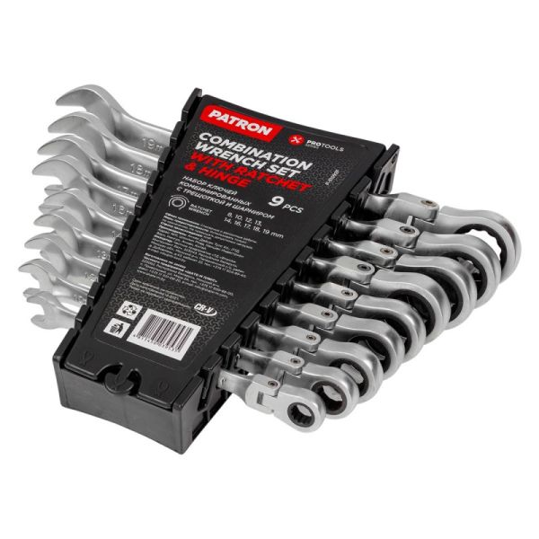 Ключи комбинированные – универсальные гаечные ключи, совмещающие в себе функционал и преимущества рожковых и накидных ключей. Зевы комбинированных ключей имеют одинаковые размеры. Ключи гаечные с открытым и кольцевым зевами предназначены для монтажа либо демонтажа резьбовых соединений. Набор изготовлен из высококачественной стали Cr-V. Трещоточный механизм с шарниром в накидной части ключа позволяет комфортно работать в местах с ограниченным пространством Ключи поставляются в трапециевидном пластиковом держателе. Комплектация: 8, 10, 12, 13, 14, 16, 17, 18, 19мм