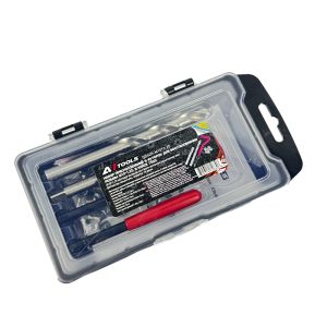 Применяется для восстановления поврежденной внутренней резьбы. В наборе сверло HSS, метчик HSS, ручка и выбиватель, а также ремонтные вкладыши из прочной нержавеющей стали.