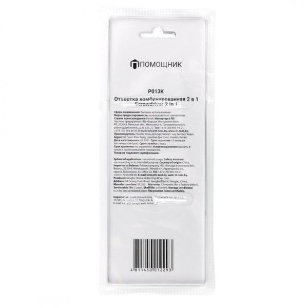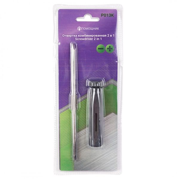 Отвертка переставная комбинированная 2 в 1 в блистере - это ручной слесарный и столярный монтажный инструмент, предназначенный для завинчивания и отвинчивания крепёжных изделий с резьбой. Она имеет сменную двухсторонняя насадку, которая позволяет использовать инструмент как отвертку крестовую и шлицевую. Рабочие профили: крестовая отвертка PH 2, прямая отвертка SL 5,5. Стержень отвертки комбинированной изготовлен из высококачественной стали, которая обеспечивает высокую прочность и устойчивость к износу. Ручка отвертки имеет удобную эргономичную форму, которая обеспечивает комфортное использование и не утомляет руку при длительном использовании.