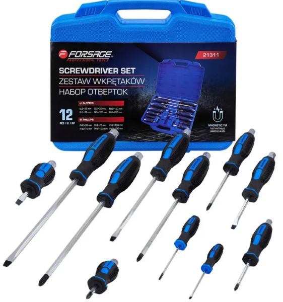 Набор силовых ударных отверток FORSAGE — это профессиональный инструмент, разработанный для надежной работы в условиях повышенных нагрузок и интенсивной эксплуатации. Он идеально подходит как для специалистов автосервисов, мастерских и строительных компаний, так и для домашних мастеров, которым необходим качественный и долговечный инструмент для монтажа и демонтажа крепежа.