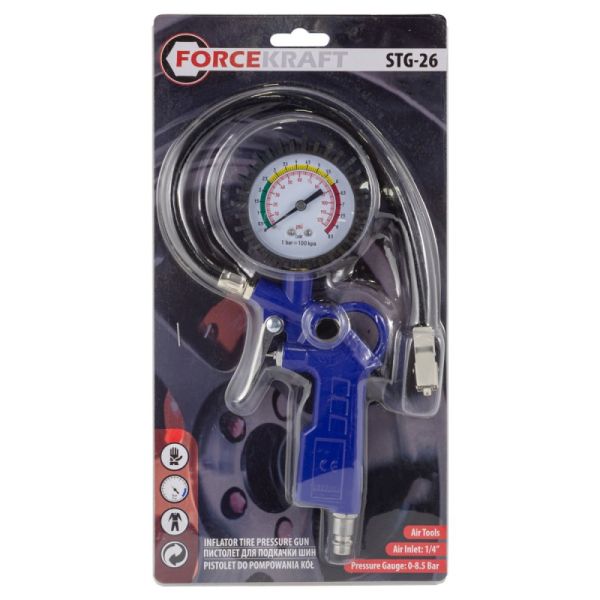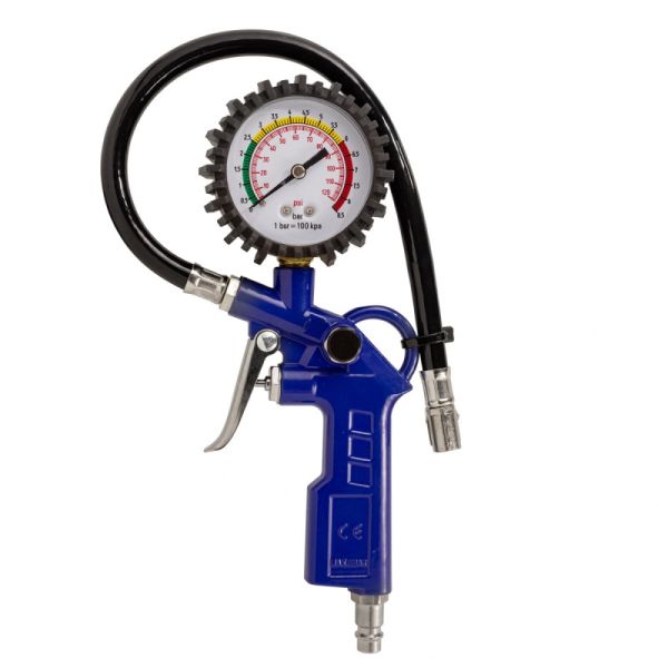 Пистолет для подкачки шин с аналоговым манометром и шлангом в блистере