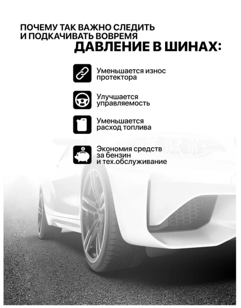 В гараже: Удобен для самостоятельной подкачки шин и регулярной проверки давления.