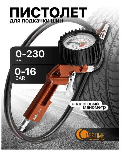 Пистолет для подкачки колес от FORSTIME — это высококачественный инструмент, предназначенный для точного контроля и подкачки автомобильных шин. Он обеспечивает удобство и надежность как в профессиональной, так и в домашней эксплуатации.