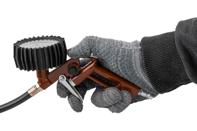 Удобство использования: Надежный зажим на наконечнике фиксирует пистолет на вентиле, предотвращая утечку воздуха и облегчая процесс подкачки.
