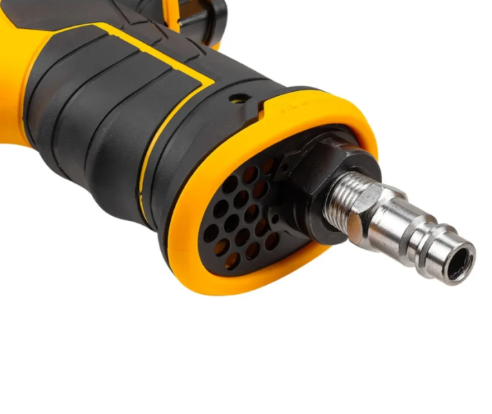 Удобный евроштуцер 1/4'', позволяет быстро подсоединить инструмент и начать работу. Оптимальное давление воздуха, необходимое для работы инструмента составляет 6.4 бара. Расход воздуха составляет 198 л/мин.