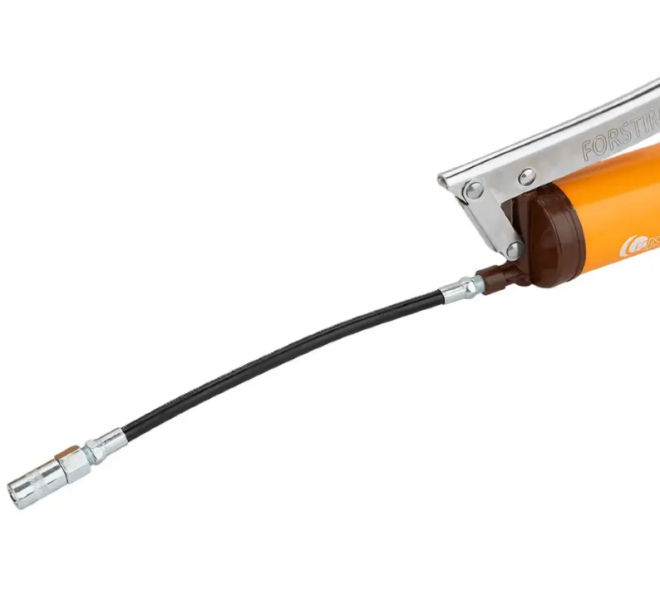 Шприц для нагнетания густой смазки от бренда FORSTIME создан для точного и равномерного нанесения смазочных материалов на контактные детали, подшипники и шарнирные соединения. Объём 500 мл позволяет проводить обслуживание без частой дозаправки. Благодаря комплекту из жёсткого и гибкого наконечников обеспечивается доступ к труднодоступным участкам.
