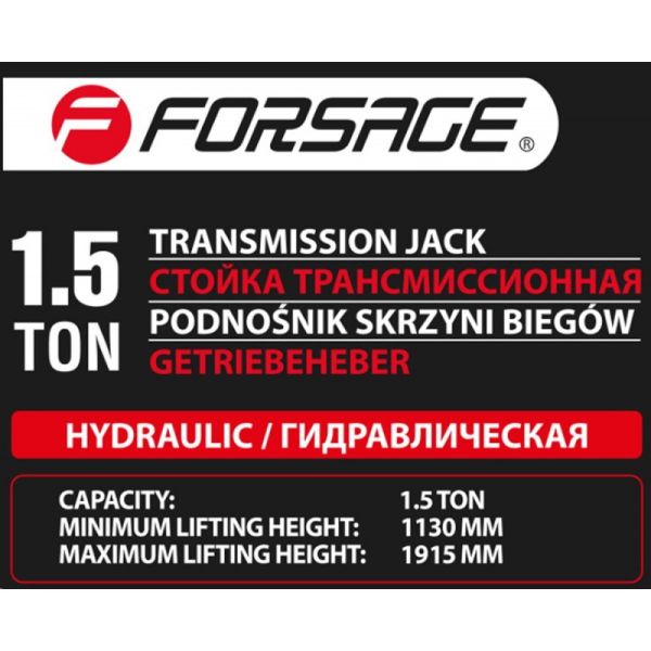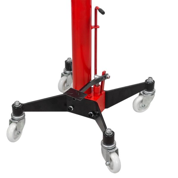 Стойка трансмиссионная гидравлическая г/п 1500 кг. Применяется для монтажа или демонтажа КПП и также всевозможных элементов выхлопной системы, защиты поддона картера. Благодаря этому устройству можно эффективно проводить работы по починке автомобилей на станциях технического обслуживания. Подъем осуществляется при помощи ножного насоса, опускание путем откручивания клапана вручную. Подъем и опускание дозировано с предельной точностью. Технические характеристики: Минимальная высота подъема: 1130 мм. Максимальная высота подъема: 1915 мм. Грузоподъемность: 1500 кг Количество колес: 4 (четыре пластиковых колеса диаметром 10 см и толщиной 3см, поворотные ролики с шарикоподшипниками).
