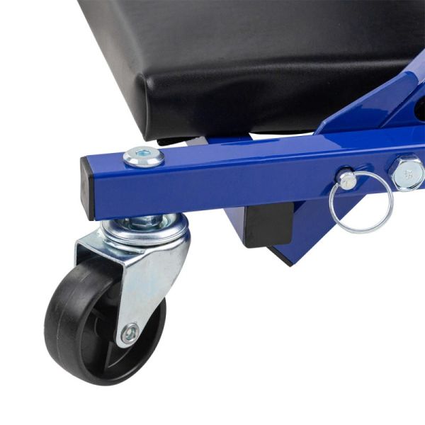 Отличное приспособление для мастерских, автомастерских, СТО, гаражей - стул-лежак трансформер. Усиленное и прочное основание из качественного металла, мягкая обивка, и регулируемый угол подъема - это прежде комфорт для Вас при выполнении долгих и сложных работ. Трансформер из лежака в стул - это дополнительное сохранение места в мастерской, а также качественное и комфортное место для выполнения работ в сидячем положении. Стоит отметить и хорошую маневренность стула подкатного за счет поворотных роликов **на подшипниках.
