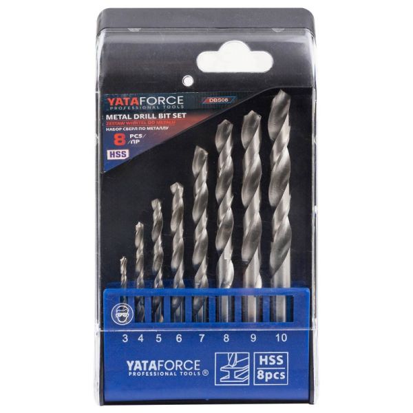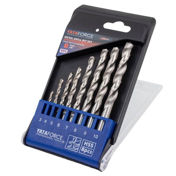 Набор сверл по металлу HSS 8 предметов от бренда YATAFORCE - это набор спиральных свёрл, предназначенных для сверления отверстий в металлических изделиях.