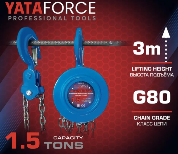 Лебедка механическая подвесная c фиксацией цепи натяжения (таль) - подвесное грузоподъёмное устройство с механическим приводом, состоящее из подвижного и неподвижного блоков и проходящего через их шкивы троса или металлической цепи. Изготовлена из углеродистой стали, обладает долговечностью и надежностью. Лебедка мобильная - легко носить с собой благодаря простой конструкции и небольшим размерам. Цепь крепкая и надежная, запас прочности на разрыв 4:1. Устойчива к коррозии и износу - имеет длительный срок службы. Тормоз премиум-класса обеспечит безопасность во время работы. Крюки могут вращаться на 360 градусов без ограничений, что упрощает работу. Рукоятка имеет нескользящее резиновое покрытие с текстурой, что упрощает эксплуатацию рычажной тали. Характеристики: грузоподъемность 1.5 тонны, длинна троса 2,5 метра, вид - цепная, тип подвески - стационарная. Такие лебедки применимы в автомобильной сфере, строительстве и других областях для перемещения груза.
