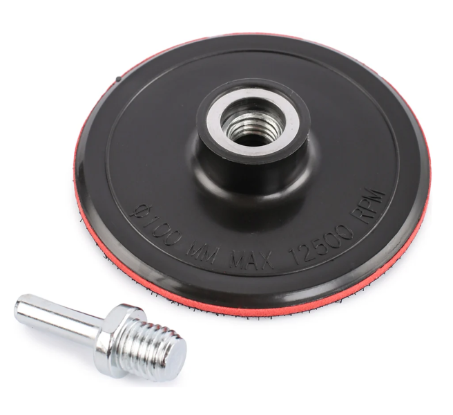 Опорная тарелка совместима сугловыми шлифовальными машинами(посадочное место М14), а так-же в комплекте адаптер с цилиндрическимхвостовиком(ø 9мм)позволяющий применять ее сэлектродрелью и шуруповертом оснащенным быстрозажимным патроном.