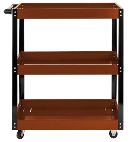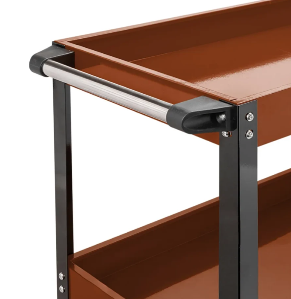 Тележка инструментальная трёхполочная - это профессиональное мобильное решение для организации рабочих мест и хранения инструмента в условиях автосервисов, производственных участков и станций технического обслуживания. Тележка изготовлена из усиленной стали с антикоррозионным покрытием, обеспечивающим устойчивость к механическим повреждениям и длительный срок службы. Конструкция включает три полки с дифференцированной грузоподъёмностью: верхняя полка выдерживает до 30 кг, средняя - 45 кг, нижняя - 60 кг, что позволяет рационально распределять инструмент и оборудование. Тележка оснащена четырьмя поворотными колёсами для высокой мобильности и маневренности, а также эргономичной ручкой для удобного перемещения. Утопленная конструкция полок предотвращает падение инструментов и мелких деталей. Габаритные размеры 720×350×780 мм и общая нагрузка до 135 кг делают тележку компактной и вместительной. Предназначена для профессионального и частного использования в гаражах, мастерских и на производственных объектах.