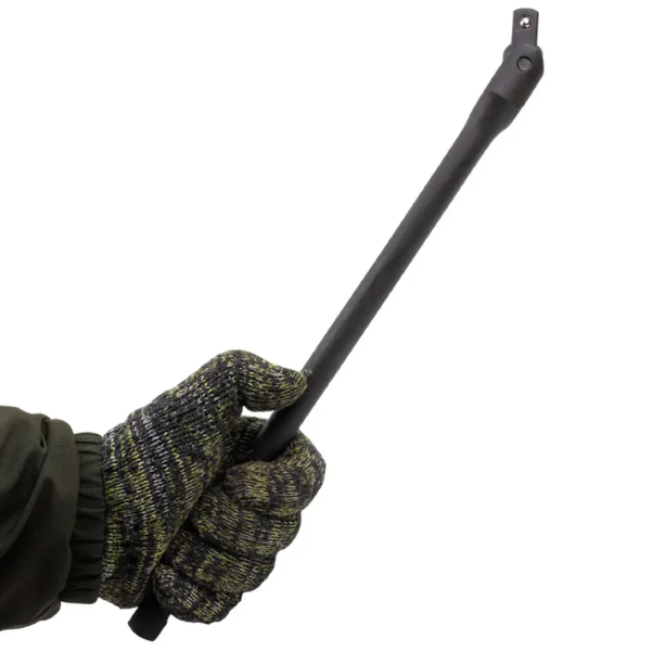 Вороток шарнирный с накаткой 1/2'' (L- 380 мм.) имеет рифленую металлическую рукоятку, которая имеет предотвращает проскальзывание руки. Например, шарнирный вороток для головок может использоваться при шиномонтаже колес или при срыве различных резьбовых соединений. Шарнирный вороток имеет посадочный квадрат под торцевые головки 1/2''. Карданный вороток необходим для передачи крутящего момента на торцевые головки и другие инструменты. Вороток для головок 1/2'' шарнирный c металлической рифленой рукояткой обеспечивает надежный захват, без эффекта проскальзывания. Материал воротка хроммолибденовая сталь Cr-Мо, что говорит о его прочности, устойчивости к внешним условиям и долговечности.