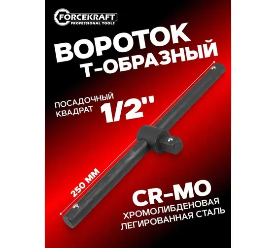 Вороток Т-образный 250мм 1/2"используется при выполнении ремонтных работ в автомобиле или другой технике и значительно ускоряет процесс работы. Плавающая головка позволяет фиксироваться под нужным углом, поэтому инструмент идеально подходит для откручивания болтов в самых трудно доступных местах. Вороток изготовлен из прочной закалённой стали, которая выдерживает высокие нагрузки. Данный тип воротка обладает преимуществом в виде равномерной нагрузки на рабочую часть, что позволяет уверенней откручивать крепеж не боясь за срыв граней. Посадочный квадрат снабжен подпружиненным удерживающим шариком.